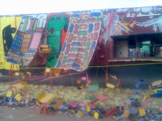 Dans le cadre de la 3e édition du Carrefour international des arts plastiques, Hyacinthe Ouattara expose son « train-train quotidien » à Ouagadougou. Une installation exposée sur plusieurs mètres et inspirée d’un voyage au Ghana, selon l’artiste. Après une visite de cette exposition et un bref entretien avec l’auteur le mardi 19 novembre 2013, nous nous permettons d’y apporter un regard critique.